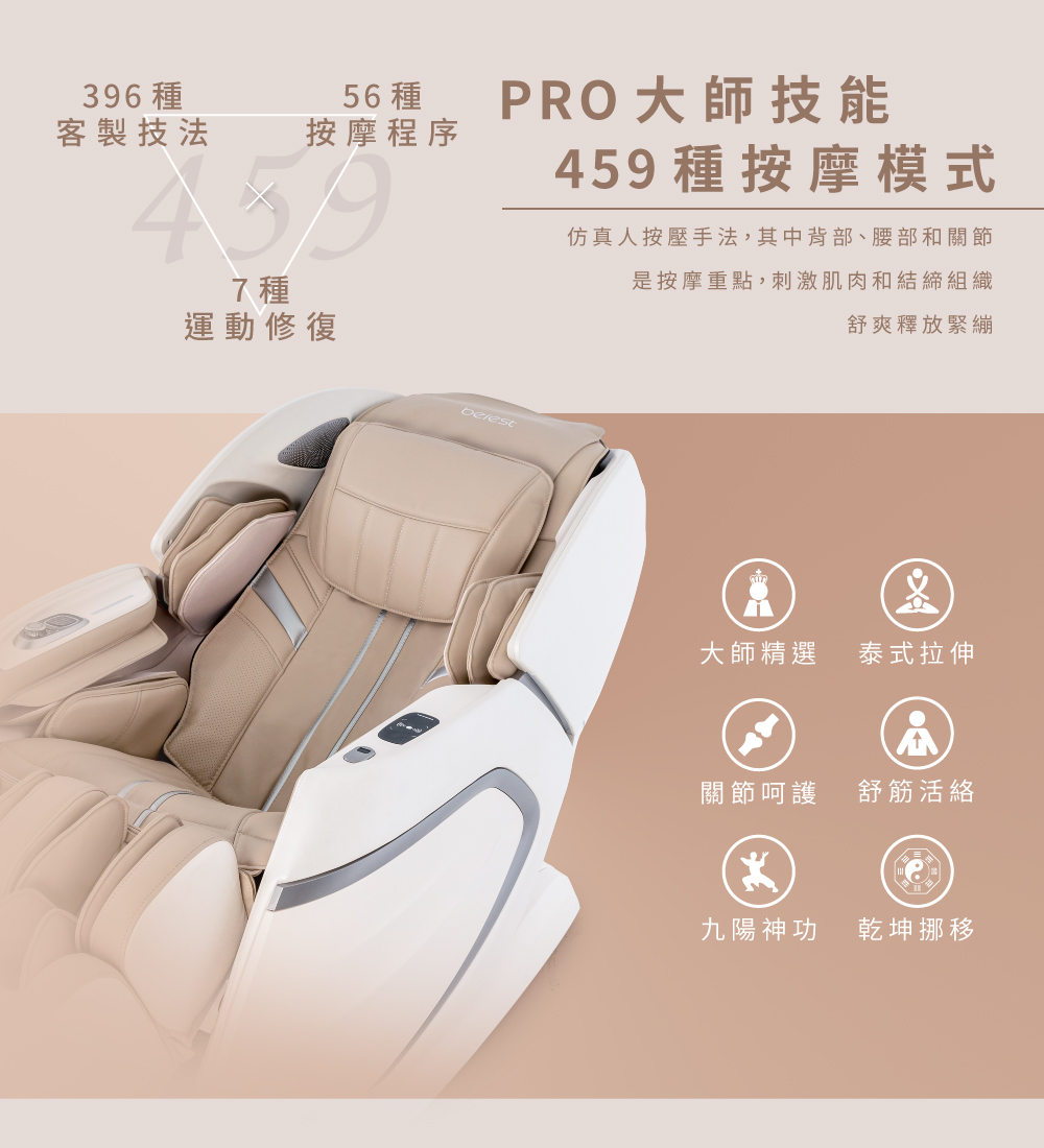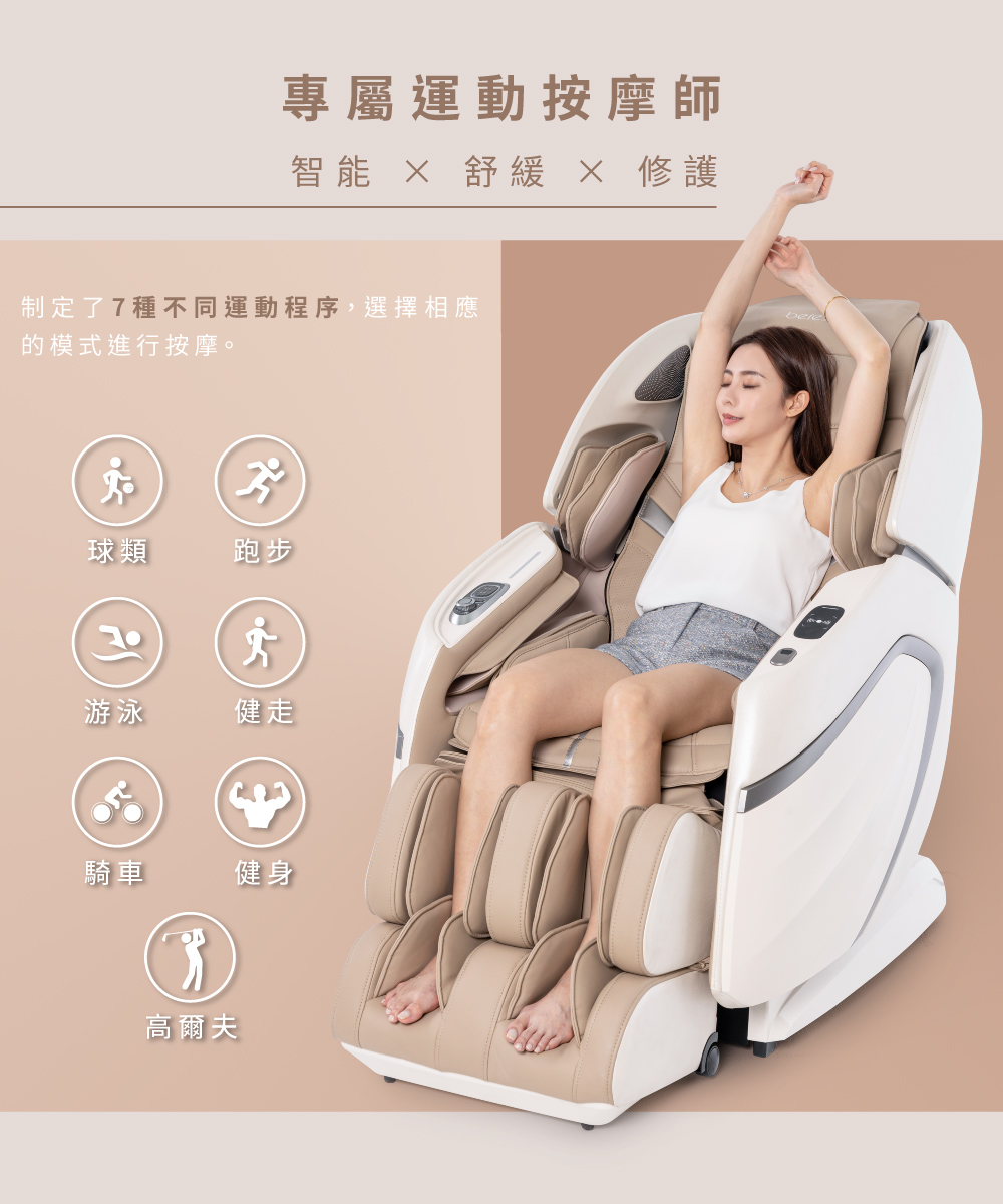 396種按摩手法+56種自動模式+7種運動修復